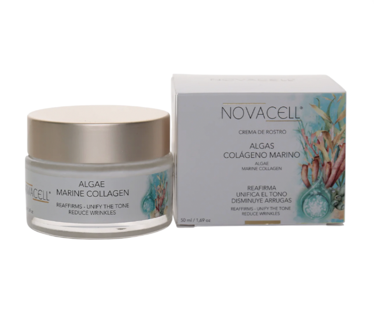 Qué solución te entrega: La Crema Facial Algas Marine Collagen NovaCell combina colágeno marino hidrolizado y un complejo de algas rojas y verdes altamente bioactivas, diseñadas para tensar la piel, mejorar la elasticidad, combatir la flacidez y recuperar firmeza desde las capas profundas.