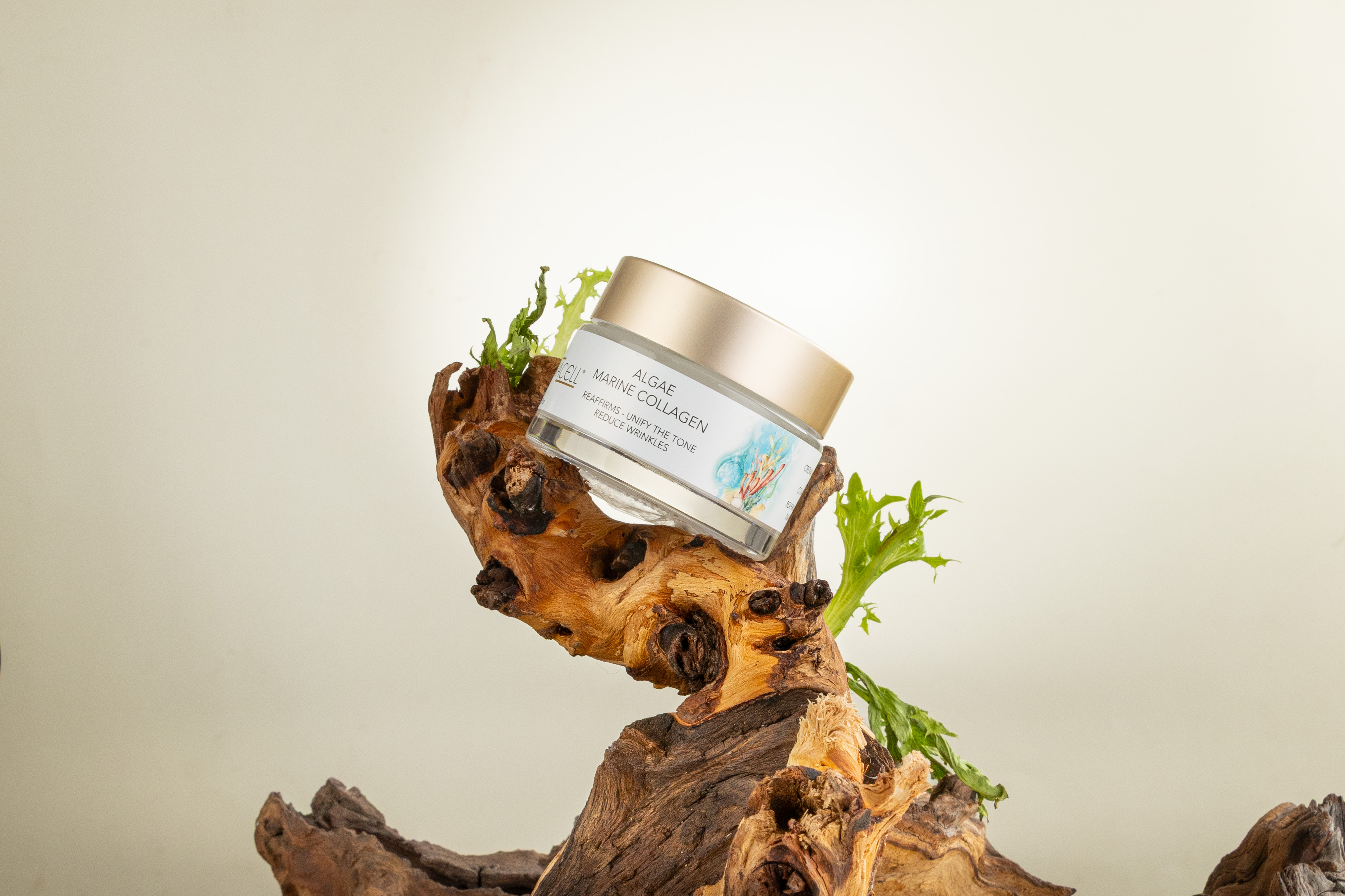 Las algas aportan minerales, antioxidantes y polisacáridos que refuerzan la matriz dérmica, mientras que el colágeno hidrolizado actúa como builder estructural que mejora el soporte de la piel, dejando un aspecto más tenso, joven y uniforme. Es una crema que trabaja tanto al instante (efecto tensor) como a largo plazo (reafirmación continua).