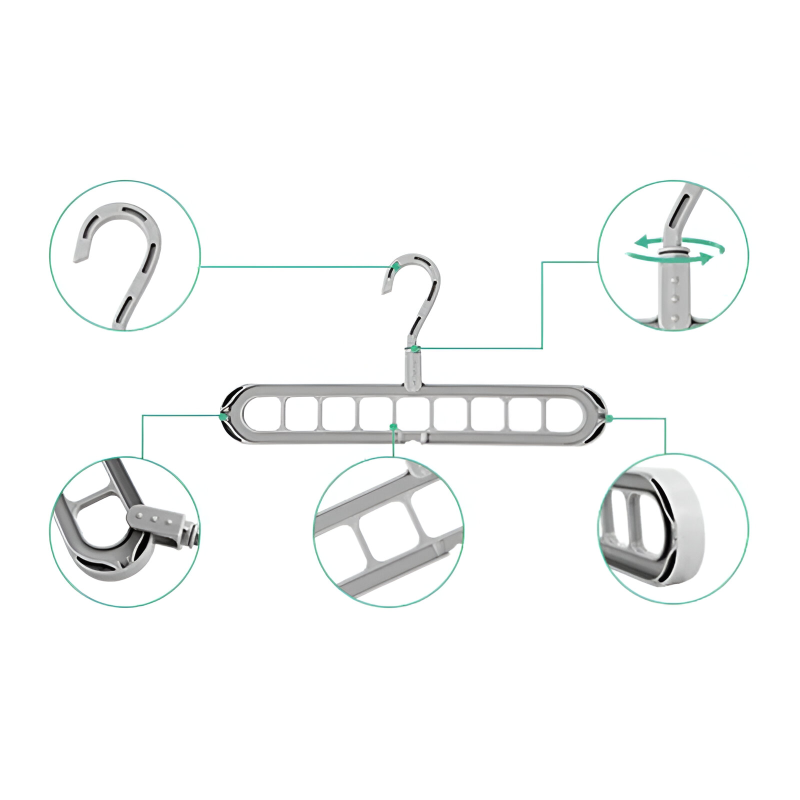 Rotación de 360 Grados: El gancho es giratorio y desmontable, permitiéndote colgar y acceder a tu ropa desde cualquier ángulo.